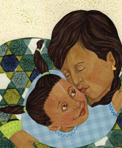 I find this process of layered papers apropos to the story of loving relationships that I am telling. I’m posting just a small portion of one of the story spreads. It also includes my personal touches of illustrated faces and figures.
