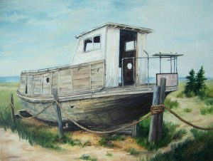 “The Eagle” is an old boat that is now landed for retirement. This beautifully aged boat is located on the shores of Northern Lake Michigan; I took the photo while on vacation to use as one of my landscape references.